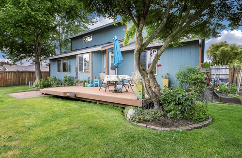 Charming Puyallup Valley HOME in a cul-de-sac! The location, & care, is sure to impress! From the established landscaping to the sweet front porch, you will feel the warmth. As you enter the inviting color palate & vaulted ceilings will greet you and encourage you to tour further. The Living room has a fireplace & lots of natural light with vaulted ceiling. The kitchen has solid surface counters, new appliances, breakfast nook that opens to the backyard. The backyard has a deck, vegetable gardens, place for those who would possibly want chickens, outbuilding & privacy. Back into the home, you find the half bath, utility & HUGE primary bedroom & bathroom with large soaking tub! Upstairs there is a full bathroom & 2 more bedrooms plus a bonus room. It could be a very large 3rd bedroom as well. A 3 car garage & room for RV Parking.
